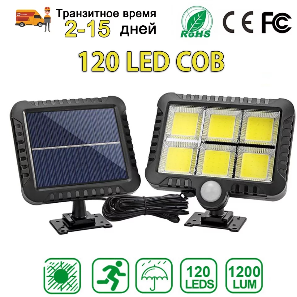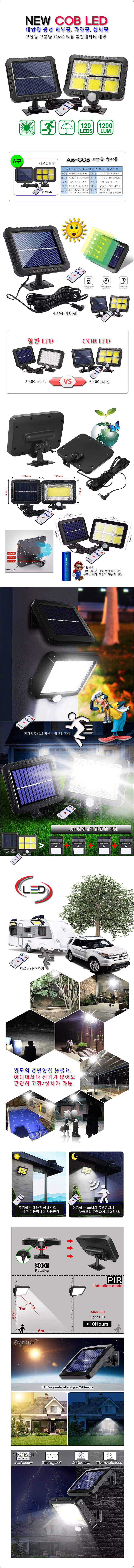 [KC인증] 태양광 충전식 센서 120 LED 벽부등 (6구 Ai6-COB)