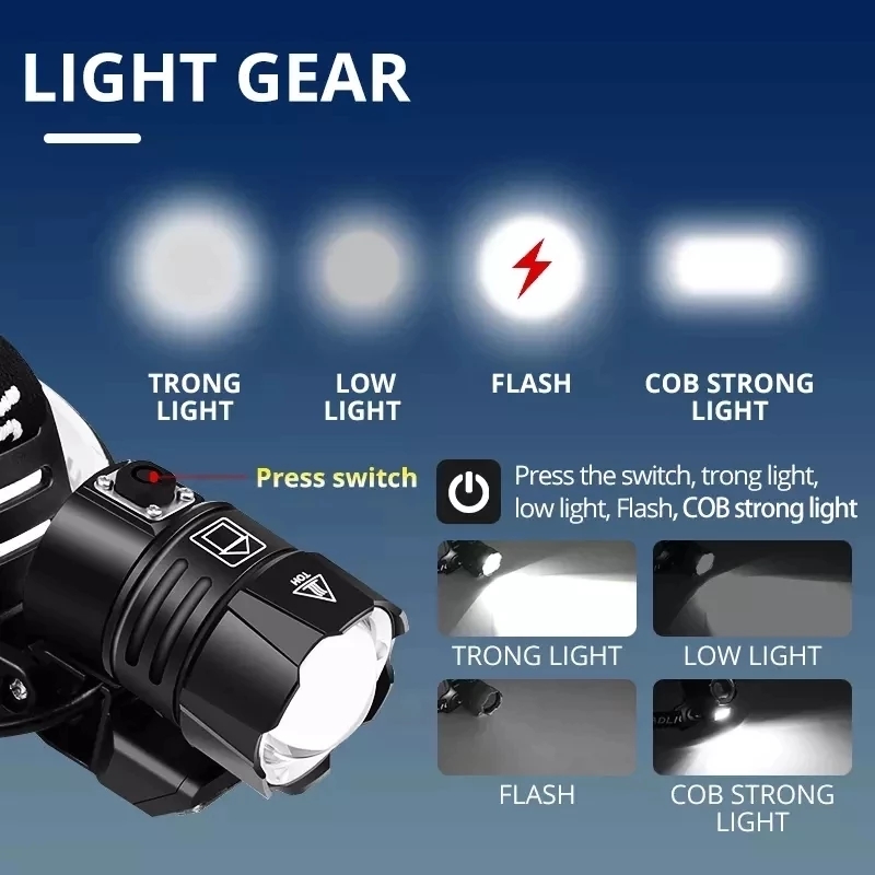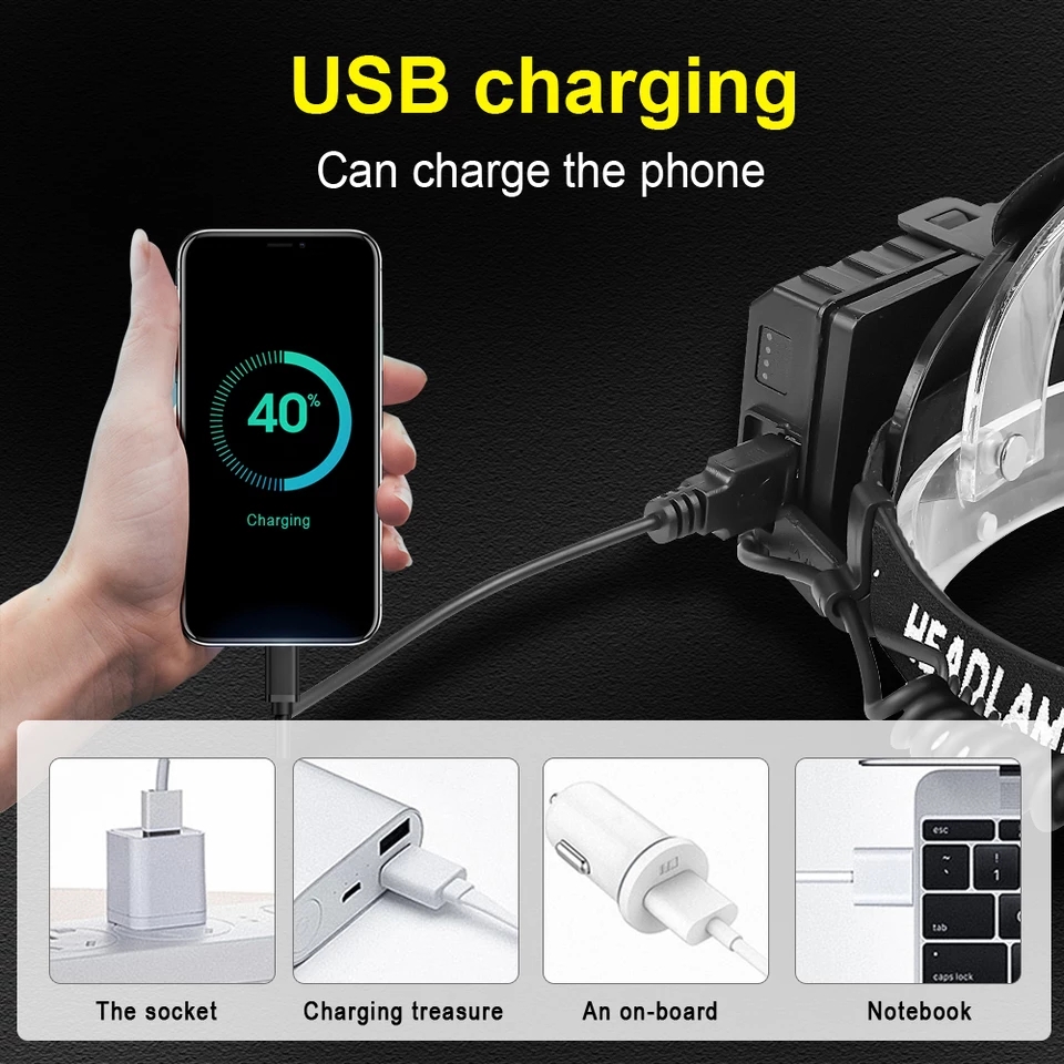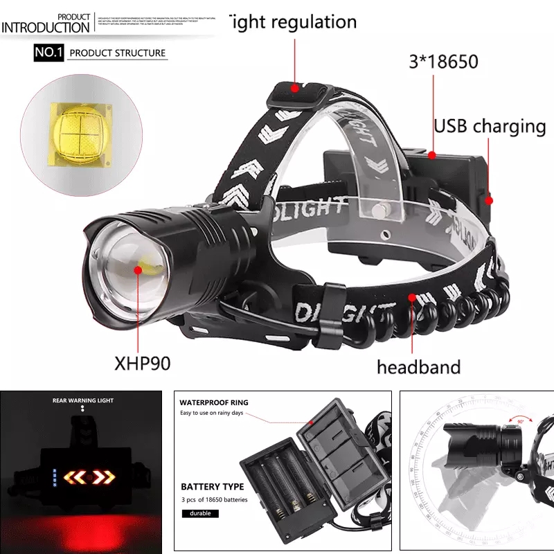 [캠핑용품] XHP-902 헤드랜턴 LED 전조등 충전식 캠핑/등산/낚시/해루질/작업등