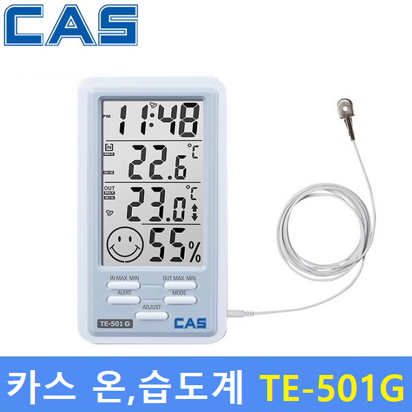 [캠핑용품] 카스 TE-501G 프리미엄 2채널 온도/습도/시계 (내부/외부 온도)