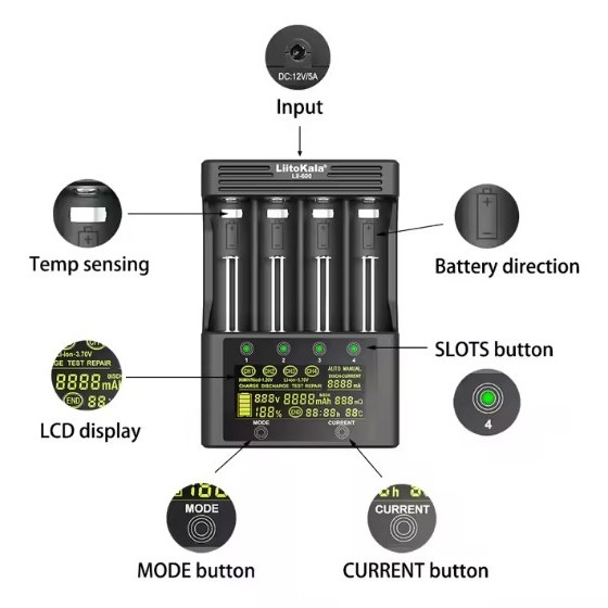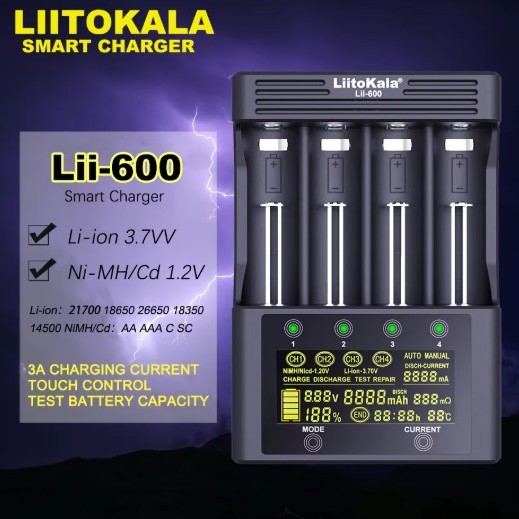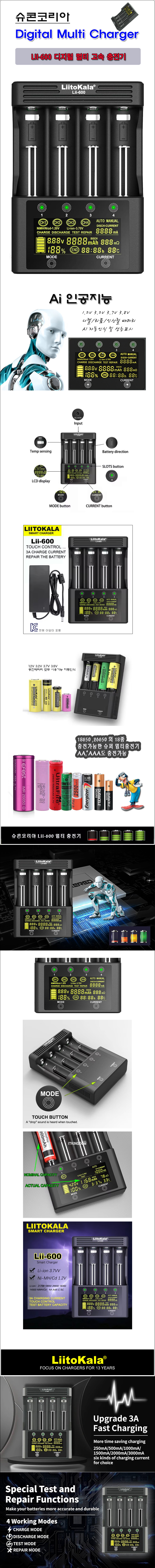[KC인증] 명품 LII-600 인공지능 디지털 멀티 고속 충전기 (18650 21700 26650...)