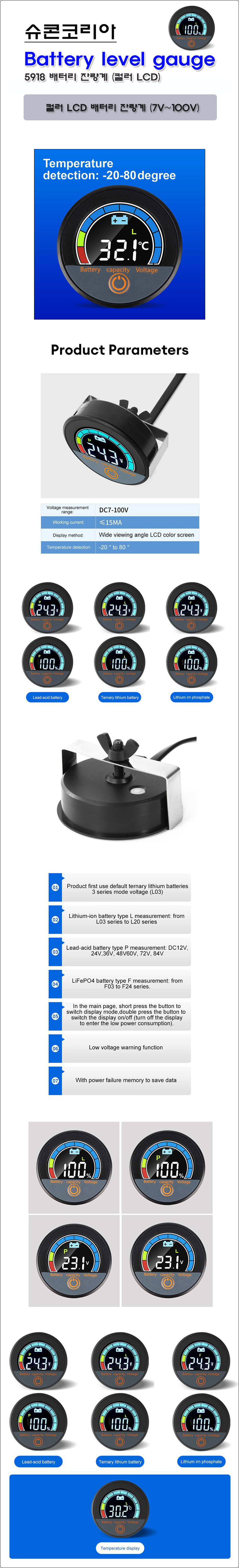 [DIY부품] 배터리 잔량/충전량 디지털 원형메타 (5918 대형 컬러 LCD)