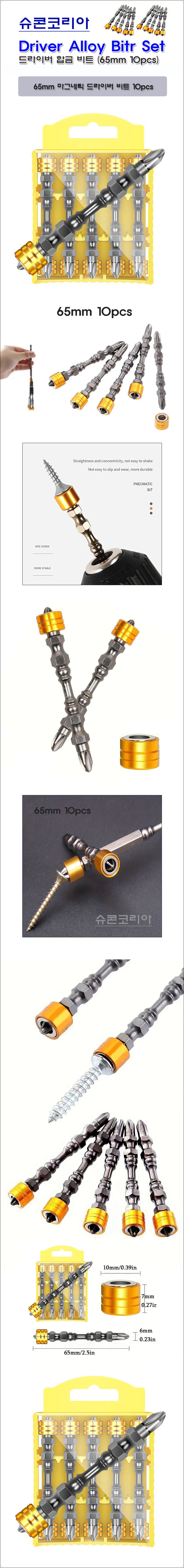 [공구] 마그네틱 십자 드라이버 65mm 10pcs 비트 세트 (합금강+자석 드라이버 팁 10pcs)