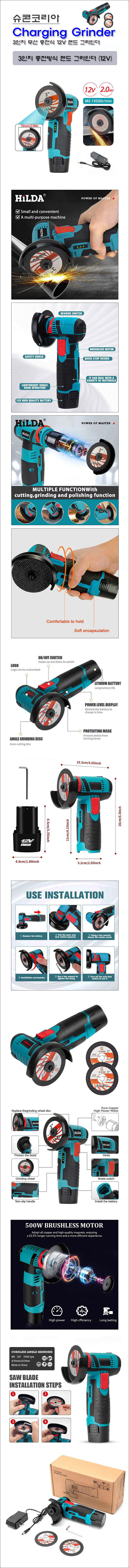 [DIY공구] 3인치 무선 핸드 그라인더/절단기/연마기 (12V 충전식)