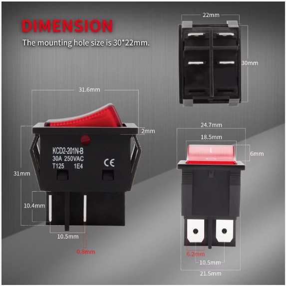 [DIY부품] ON/OFF 고용량 4PIN 사각 시소 스위치 Max 30A (AC 220V 램프적용)
