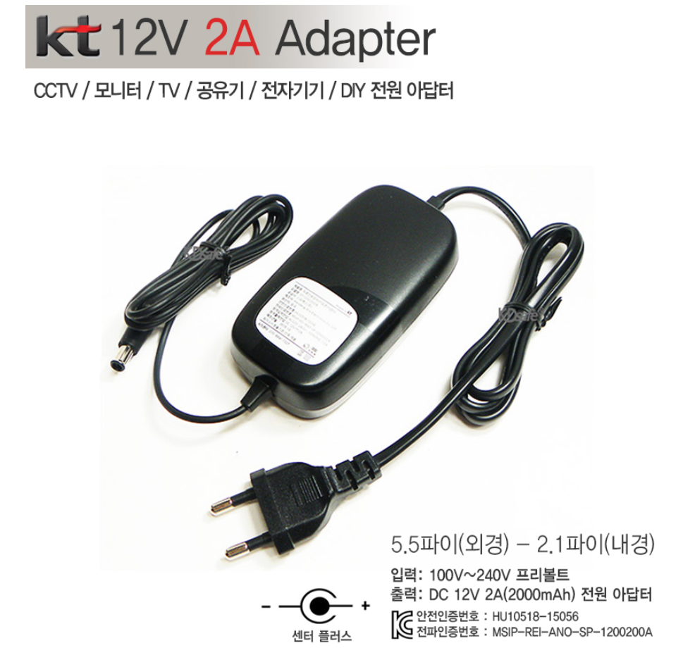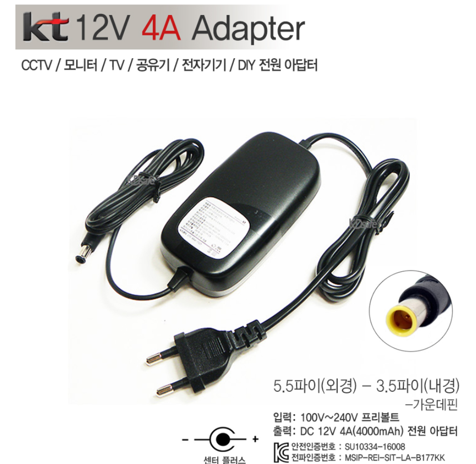KT정품 DC 12V 4A 전원아답터 5.5-2.1Ø